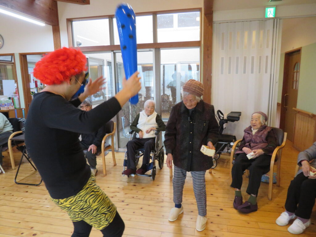 R7.2 2025 4/15 目次今月は節分にて、豆まきを行いました。職員が鬼の役を務め、ご利用者の皆さまには豆を投げていただきました。笑い声と元気なかけ声が施設中に響き渡り、福をたくさん呼び込むことができました。 活動内容 R7.1 R7.3 関連記事 R7.11 2025年12月12日 R7.10 2025年11月12日 R7.9.16 2025年10月29日 R7.8 2025年9月22日 R7.7.7 2025年8月16日 R7.7 2025年8月16日 R7.6 2025年7月23日 R7.5 2025年6月22日