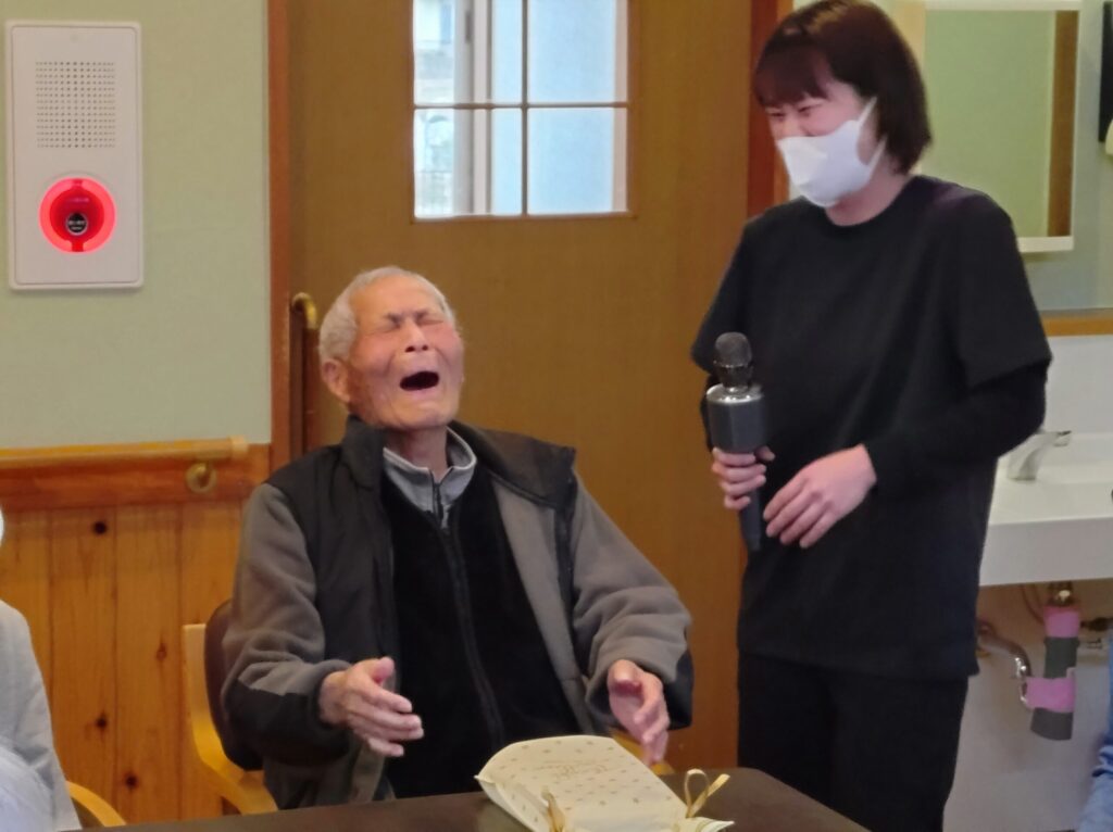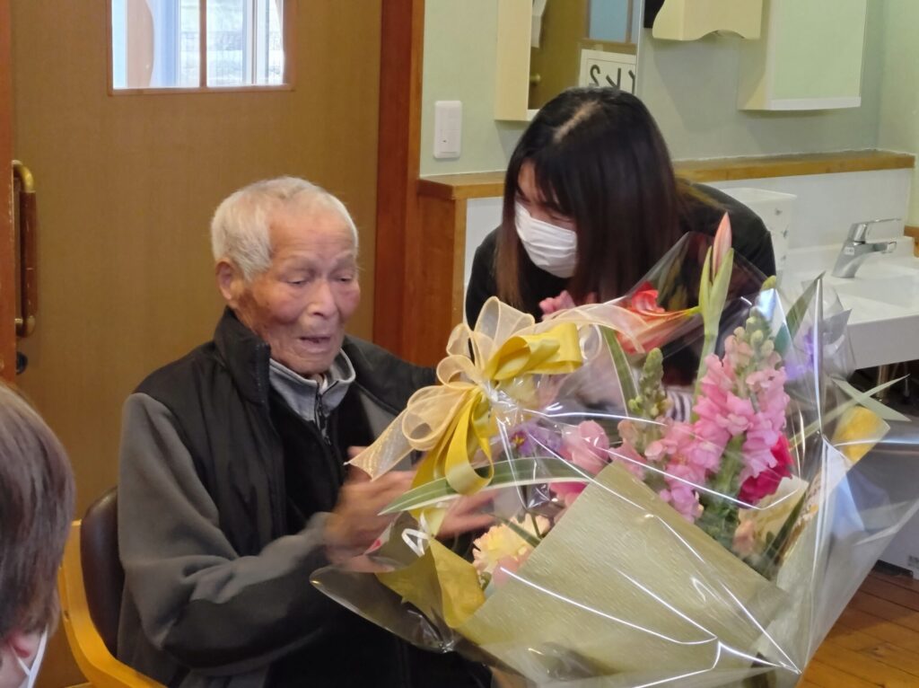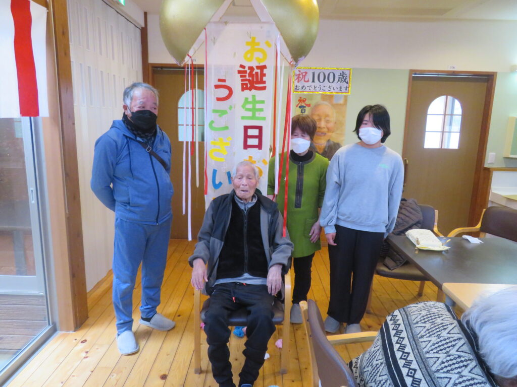 R8.2 2026 3/10 目次利用者様が百寿(100歳)という素晴らしい節目のお誕生日を迎えられました。皆さまで歌や拍手を送りながらお祝いし、会場は温かい雰囲気に包まれました。これまで歩んでこられた人生に敬意を表すとともに、これからもお元気で穏やかな日々を過ごされることを願っています。 活動内容 R8.2.3 関連記事 R8.2.3 2026年3月10日 R8.1 2026年2月28日 R8.1.1 2026年2月28日 R7.12 2026年2月28日 R7.11 2025年12月12日 R7.10 2025年11月12日 R7.9.16 2025年10月29日 R7.8 2025年9月22日